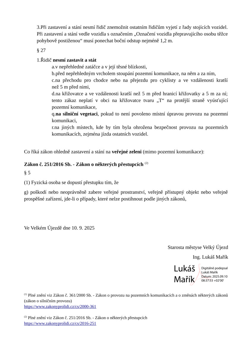 Občané mají možnost podávat podněty a přípomínky k plánovaným změnám osobně v úředních hodinách na podatelně městyse nebo písemně na podatelna@velkyujezd.cz.